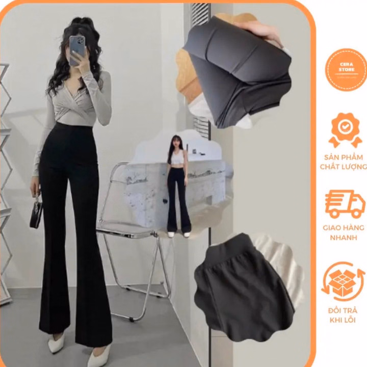 Quần Ống Loe Cạp Cao Lưng Thun Co Giãn Nữ Dày Dặn