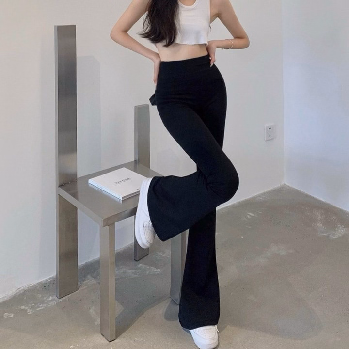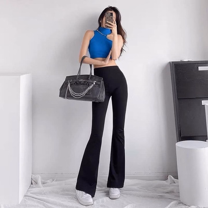Quần Ống Loe Cạp Cao Lưng Thun Co Giãn Nữ