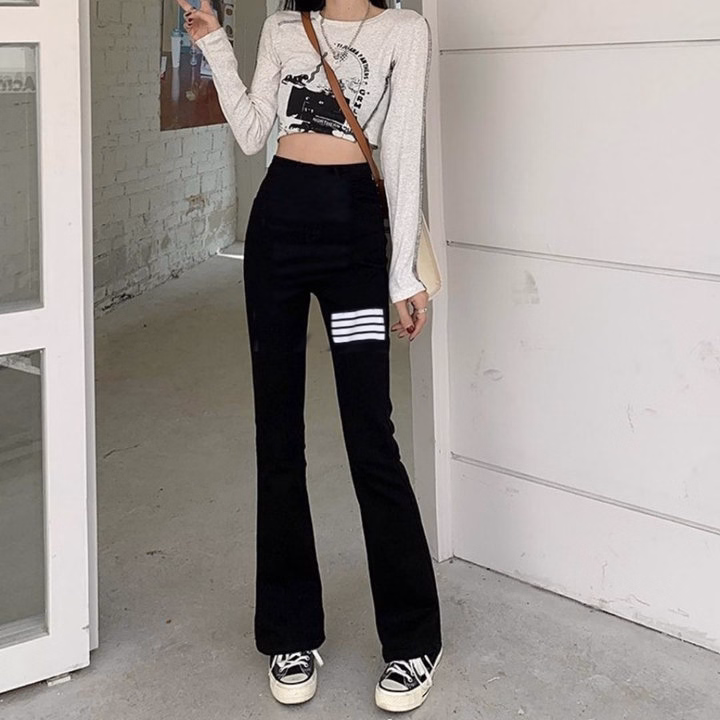 Quần Ống Loe Chất Umi Kẻ 4 Sọc Siêu Hót