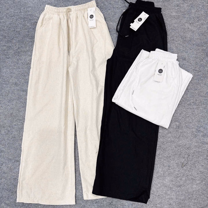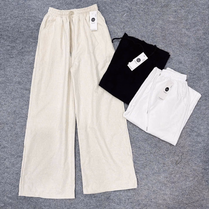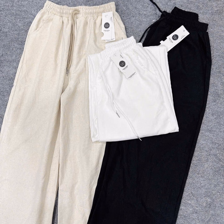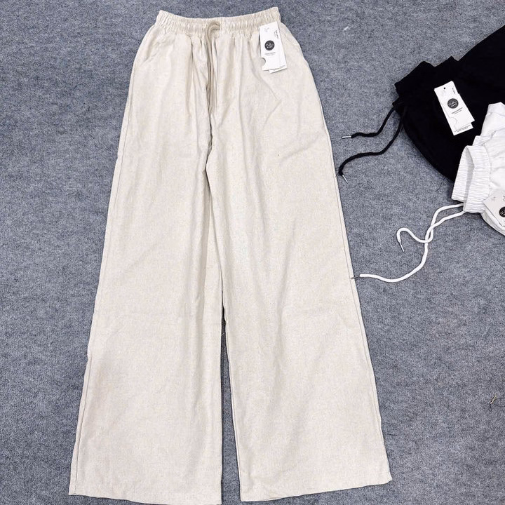 Quần Ống Rộng Chất Vải Linen Dày Mềm , Lưng Thun Có Dây Rút Nữ Cao Cấp Dài Suông T951