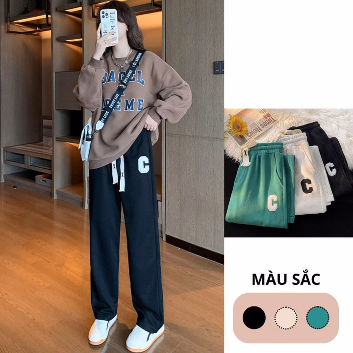 Quần Ống Rộng Dây Rút Thêu Chữ C Phong Cách Thể Thao Dành Cho Bạn Nữ – Diepchi Fashion