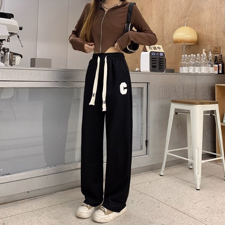 Quần Ống Rộng Dây Rút Thêu Chữ C Phong Cách Thể Thao Dành Cho Bạn Nữ