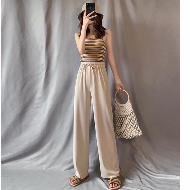 Quần ống rộng gân tăm siêu mát với chất liệu vải gân tăm siêu mát lạnh.