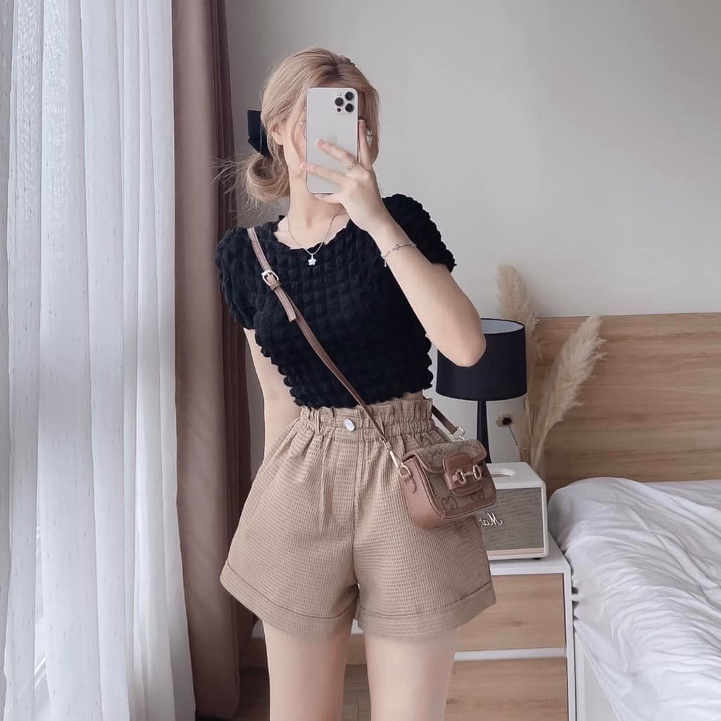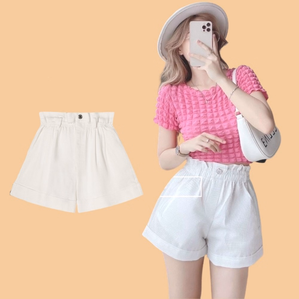 – Quần short đùi nữ cạp cao ống rộng, có túi 2 bên thời trang.