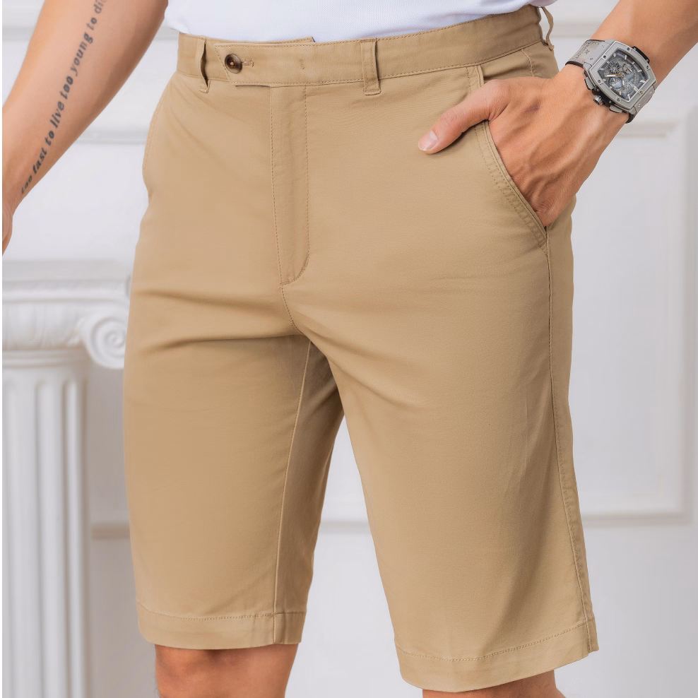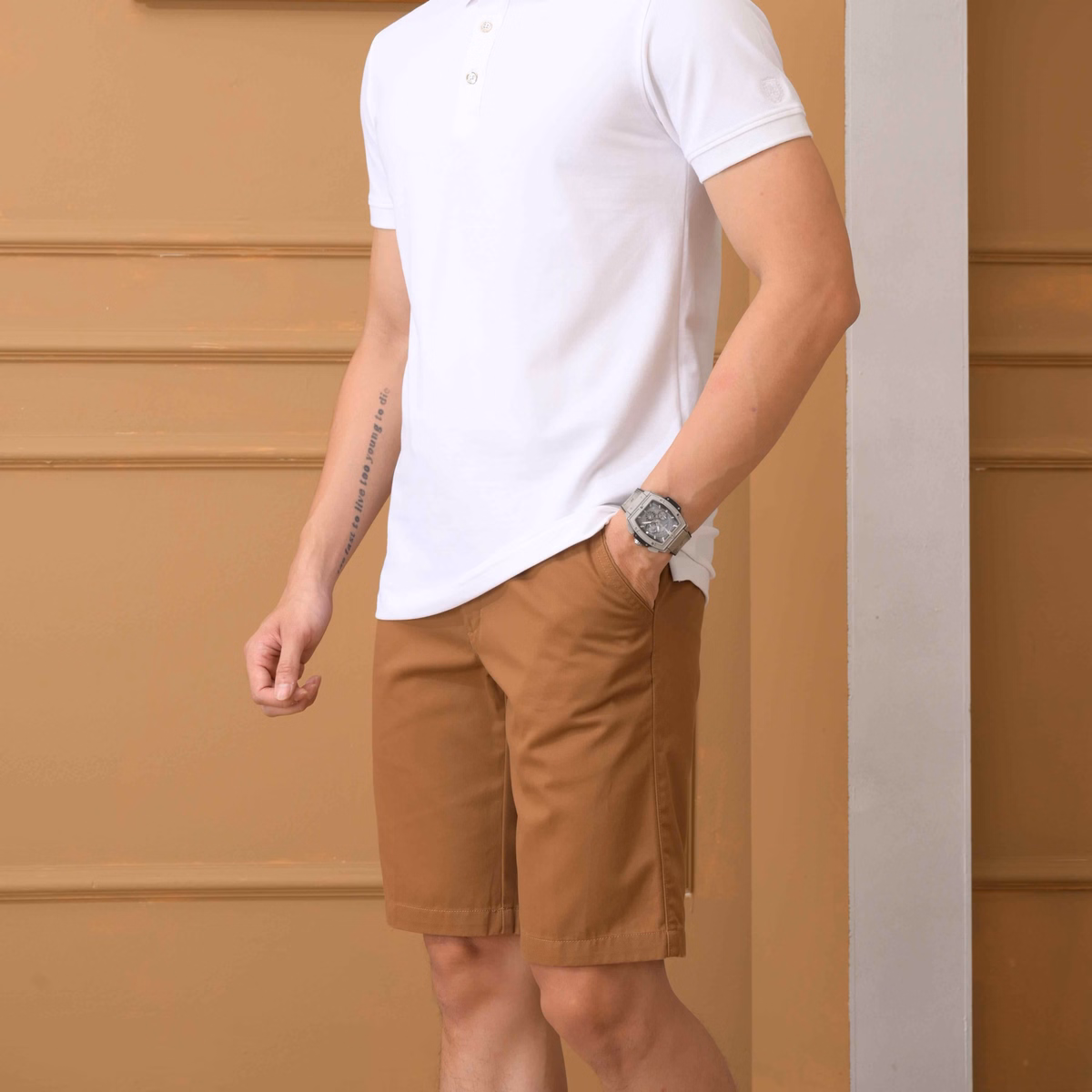 Những chiếc quần short kaki màu sắc cơ bản với chất liệu dày dặn, cùng những đường kim mũi chỉ tỉ mỉ, chọn vải và cắt may cẩn thận, lên chuẩn form dáng sẽ luôn là sự lựa chọn yêu thích của cánh mày râu. Vải kaki có ưu điểm nổi bật nhất đó là bền chắc, ít nhăn và nói không với xù lông.