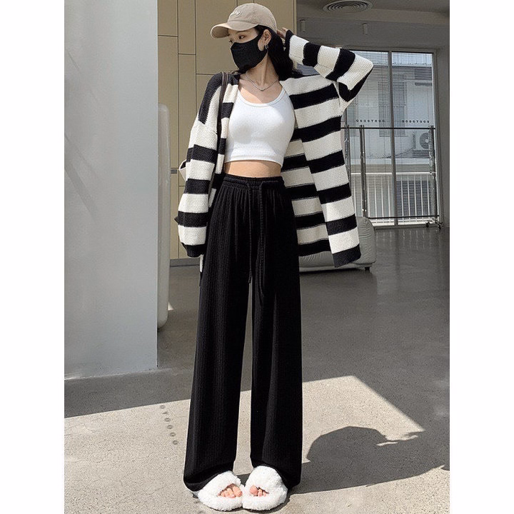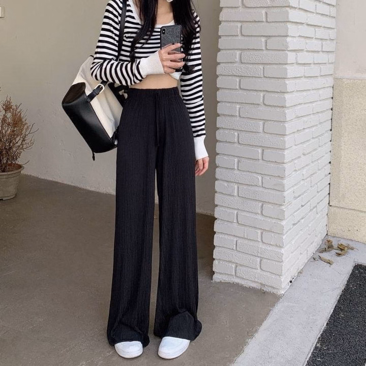 Quần Tăm Thái Ống Rộng Nữ Vải Tăm Thái Loại Đẹp Co Dãn Mềm Mịn Dài 95Cm