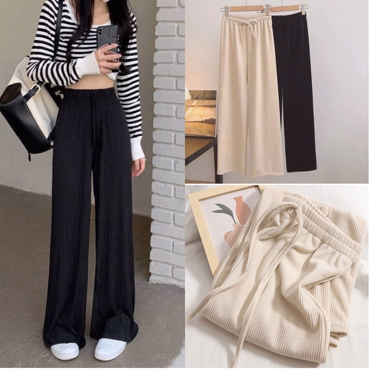 Quần Tăm Thái Ống Rộng Nữ Vải Tăm Thái Loại Đẹp Co Dãn Mềm Mịn