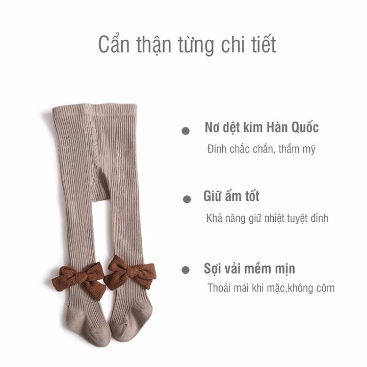 – Quần tất cạp cao, hạn chế gió lùa làm lạnh bụng bé. Cạp quần lưng thun mịn màng, co giãn vữa phải, không gây hằn in vệt đỏ lên da gây tổn thương, làm bé khó chịu khi vận động.