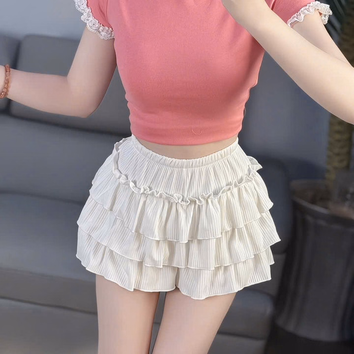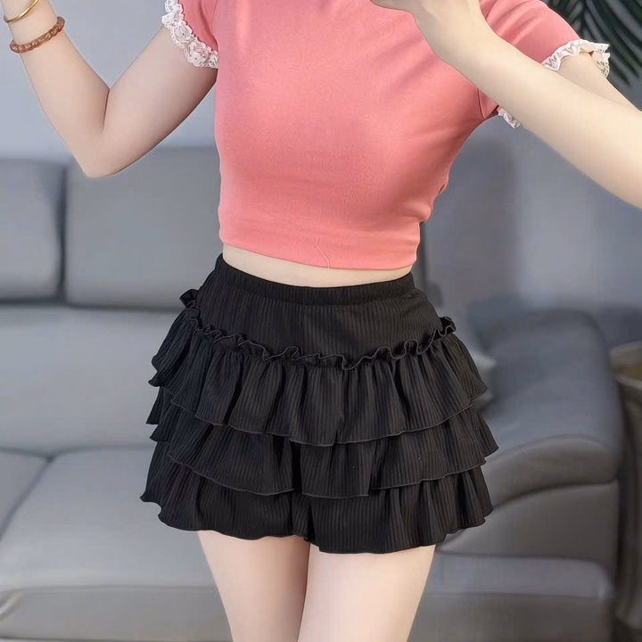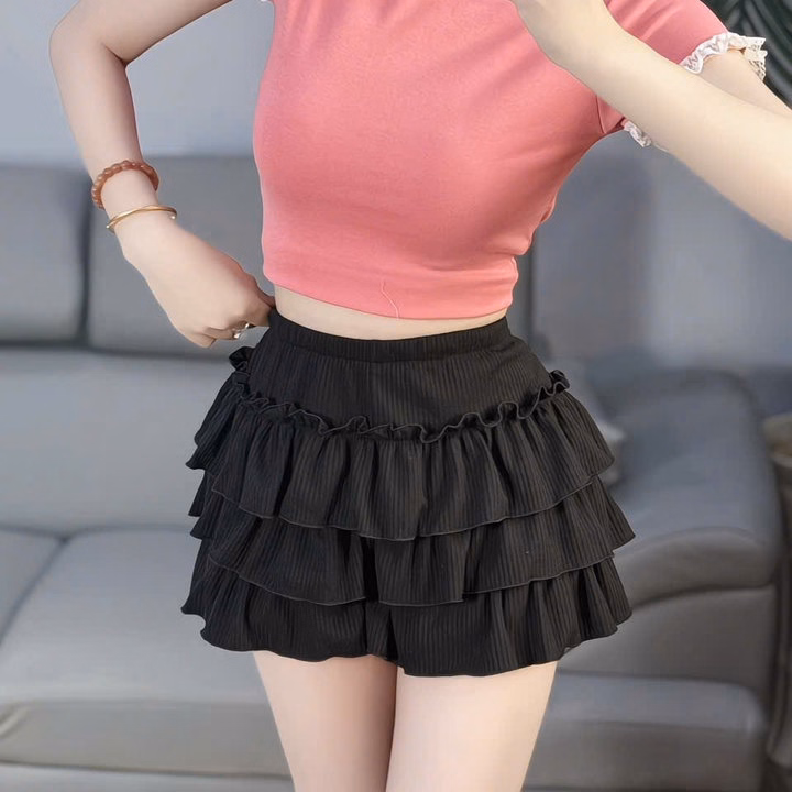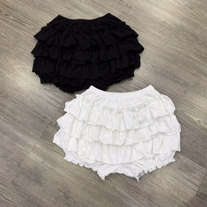 Quần váy gân tầng đây rồi ạ, dễ mặc dễ mix với tất cả các kiểu áo.
