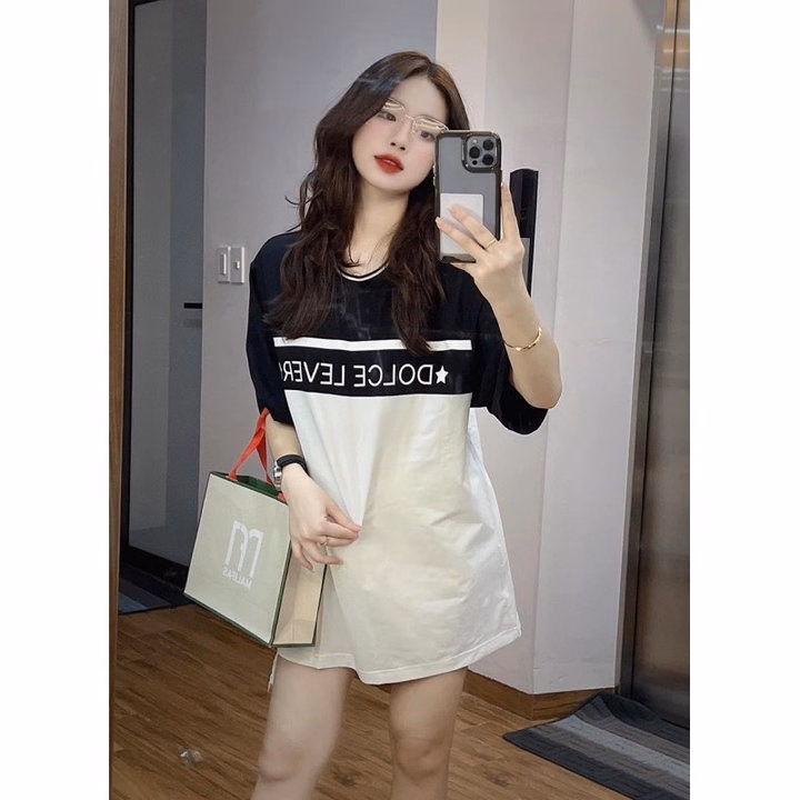 [ Rẻ Vô Địch ] Áo Thun Cotton Su Form Rộng Tay Lỡ – Doce Lever Phối Đen Trắng