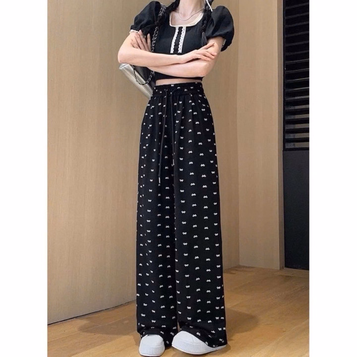 [Rẻ Vô Địch] Quần Xuông Chất Tăm In Full Nơ-Quần Hoạ Tiết Nơ Tăm