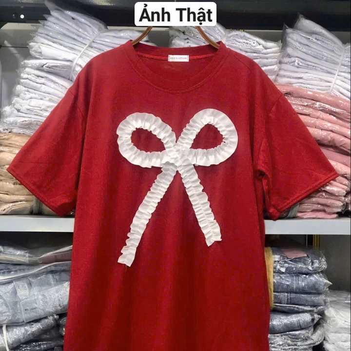 ( Lưu Ý Chất Su Mỏng Mát ) Áo Phông Form Rộng Tay Lỡ Chất Vải Cotton , Áo Cổ Tròn Nam Nữ Unisex – Nơ Loang Hồng