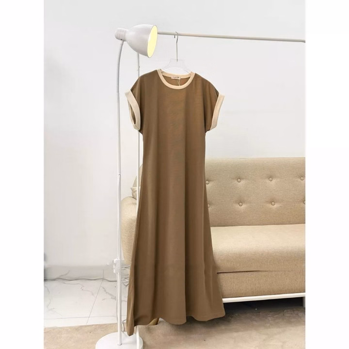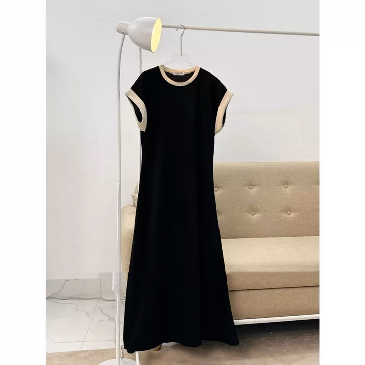 [ Rẻ Vô Địch ] Váy Xuông Dáng Dài Phối Viền Cổ, Viền Tay Form Rộng Chất Thun Thái Co Dãn Tốt Big Size
