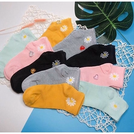 Set 10 Đôi Tất Cổ Ngắn Cúc Hoạ Mi Kèm Túi Dây Rút Siêu Hot – Dmastore