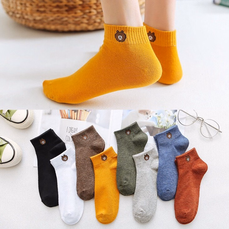 Set tất cổ ngắn 10 đôi 10 màu khác nhau kèm túi dây rút đựng