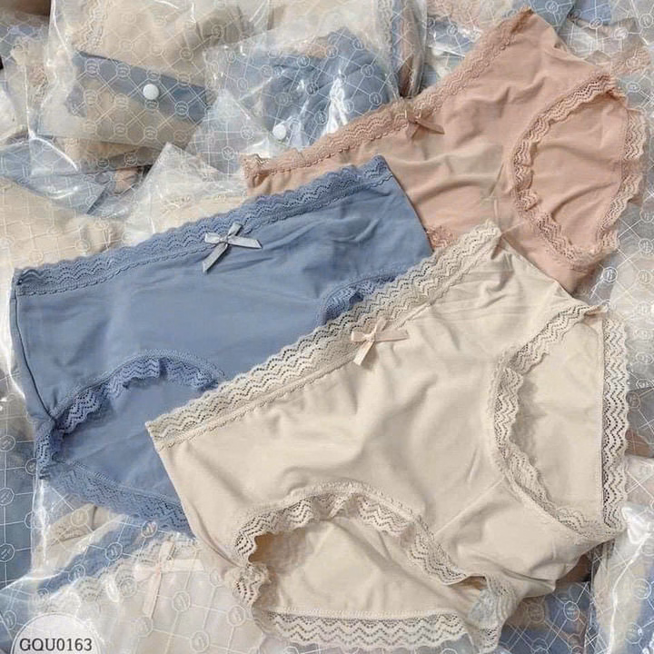 Set 3 Quần Lót Thun Lạnh Phối Nơ Viền Ren Bắt Mắt Siêu Hot Từ 40-55Kg Dành Cho Nữ