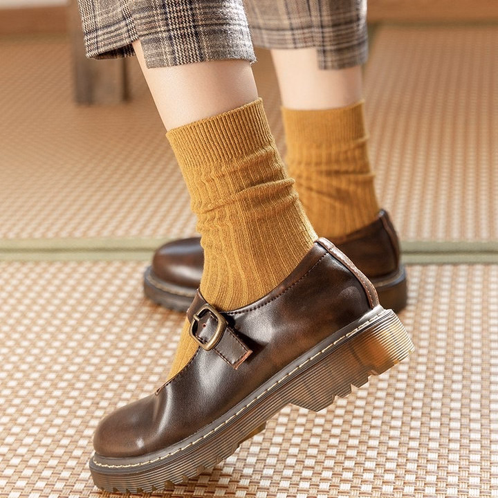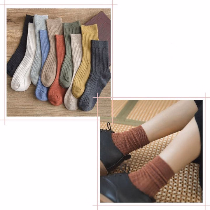 Set 5 Đôi Tất Cao Cổ Chất Liệu Len Gân Nhiều Màu Sắc Cho Bạn Nữ – Diepchi Fashion