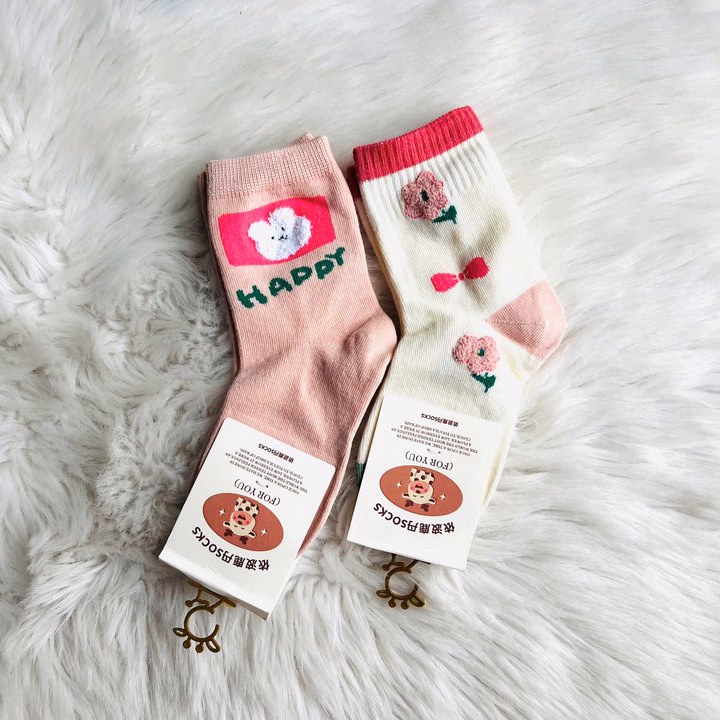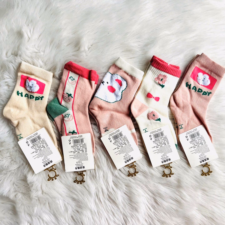 Set 5 Đôi Tất Trẻ Em Hồng Dễ Thương Size Từ 1-12 Tuổi Cho Trẻ Em