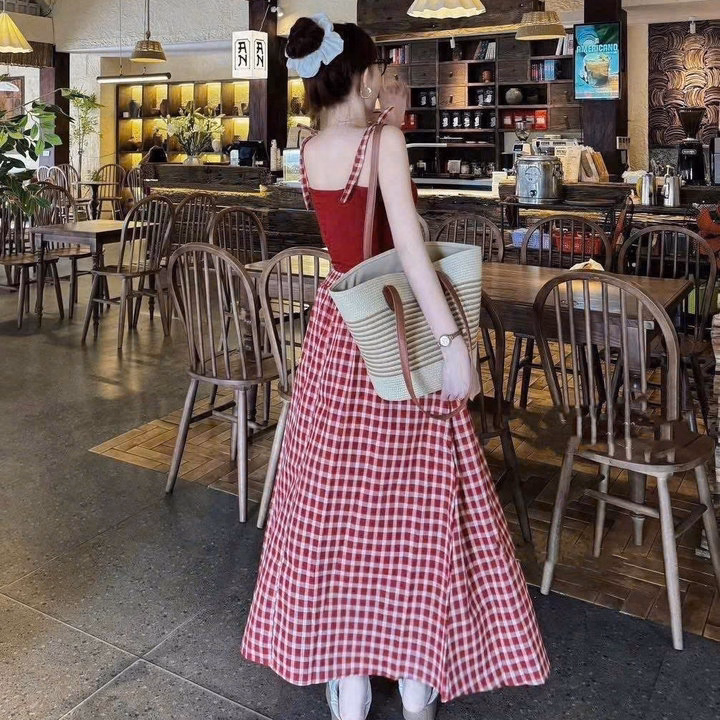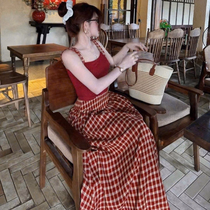 Set Áo 2 Dây Phối Chân Váy Caro Dáng Xòe Bt90Cv-Sam Store