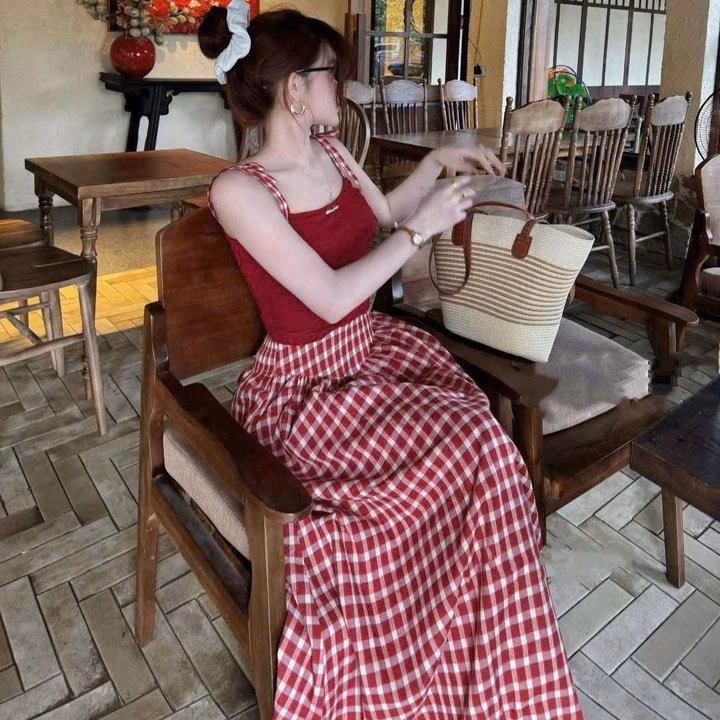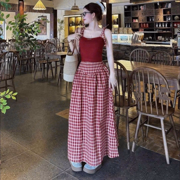 Set Áo 2 Dây Phối Chân Váy Dáng Dài Bt85Me