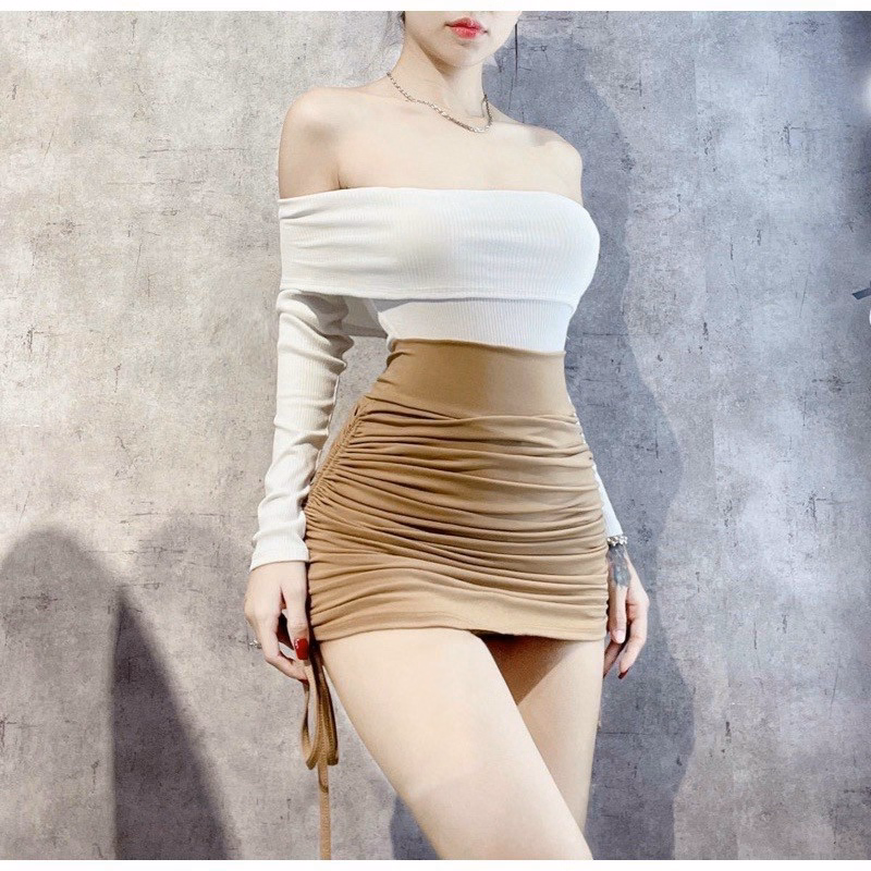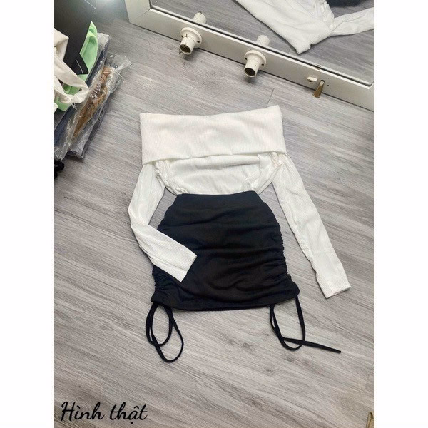 Set Áo Bẹt Vai Kèm Chân Váy Rút – Lê Phương Boutique