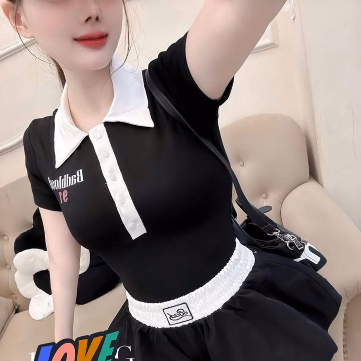 Set Áo Borip Phối Màu In Logo Mix Chân Váy Bí Bồng Tb115Sp
