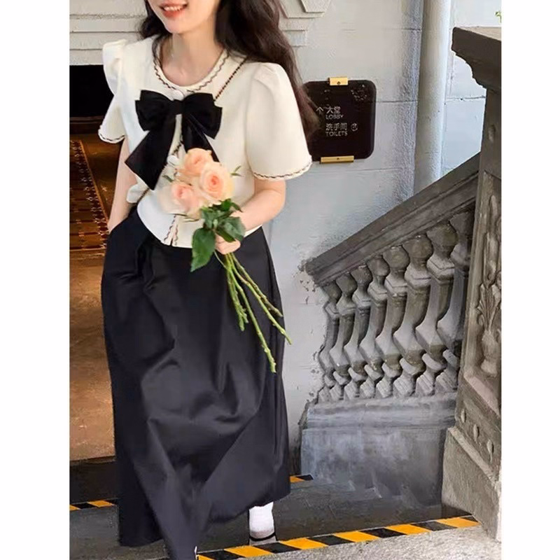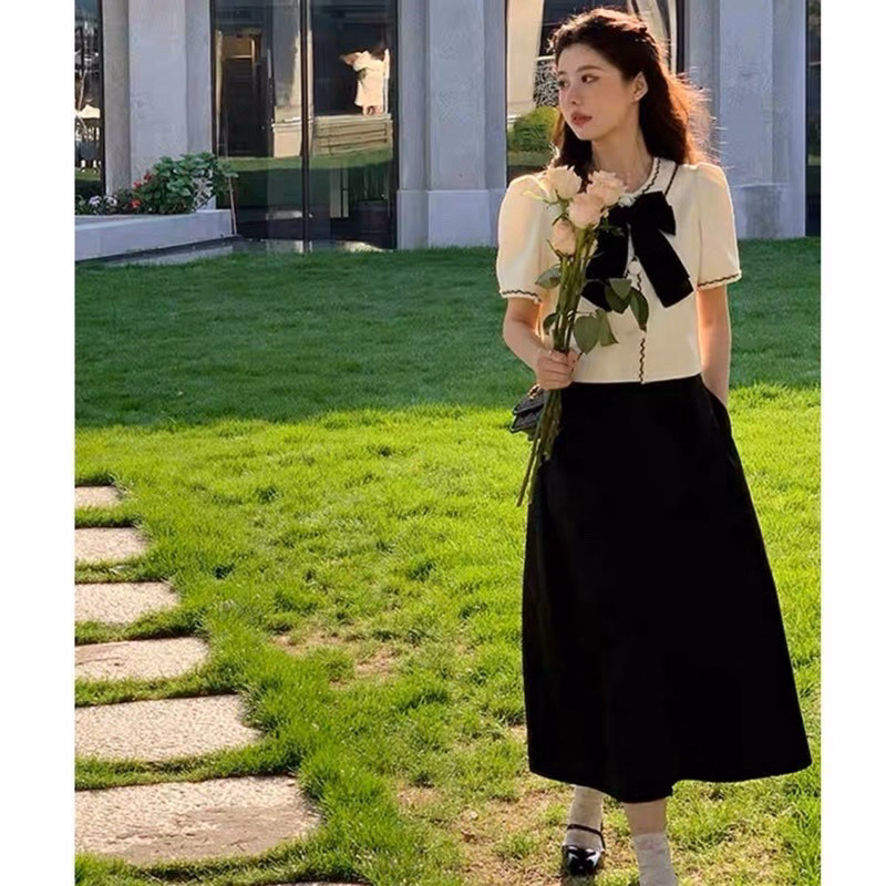 Tên sản phẩm: Set Áo Chạy Viền Cài Nút Thật Kèm Chân Váy Coton Lạnh – Haka Mây