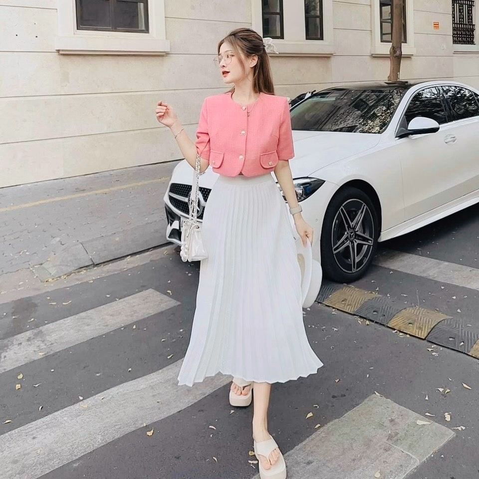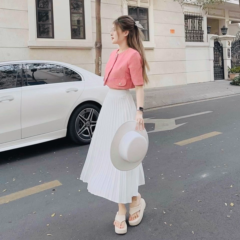 Set Áo Cổ Tròn Linen Crotop Mix Chân Váy Lụa 2 Lớp Dập Ly Hàn Quốc Sa97 – Sam Freesize < 55kg Set áo cổ tròn lenin croptop phối chấn váy lụa 2 lớp dập ly hàn quốc sang trọng đi chơi đi tiệc siêu sang chảnh. Phong cách đi làm đơn giản,thích hợp, mặc nhà, dạo phố, picnic... Form chuẩn phù hợp với vóc dáng phụ nữ Việt Nam Kiểu dáng street style vừa dịu dàng vừa cá tính Kích thước : Freesize dưới 56kg tùy chiều cao Vòng ngực: 80cm - 100cm. Vòng mông: 90cm - 120cm. Vòng eo: 60cm - 75cm. 1m50 – 1m55 từ 40 – 46kg vừa. 1m55 – 1m6 từ 46 – 52kg vừa. Trên 1m6 từ 51 – 55kg vừa. Thông tin sản phẩm: Chất Liệu : áo lenin chân váy lụa Màu sắc: Kem, Hồng váy trắng Xuất xứ: Việt Nam Lưu ý : - Do sự chênh lệch về cài đặt ánh sáng và màn hình,màu sắc của sản phẩm thực tế có sự chênh lệch nhẹ so với thực tế. - Do đo lường thủ công khác nhau,có thể có sai số 1-3cm nhưng trong phạm vi cho phép. - Giặt riêng sản phẩm Mới bằng tay với nước lạnh và phơi khô tự nhiên (tuyệt đối không sử dụng sản phẩm với các loại bột giặt có chất tẩy cao) - Lộn mặt trái trước khi giặt để đảm bảo độ bền màu của sản phẩm. - Quý khách nhận được hàng nếu có thắc mắc vui lòng liên hệ shop trước khi đánh giá sản phẩm.Quý khách nhận được hàng,ưng sản phẩm cho shop xin 1 đánh giá 5 sao kèm hình ảnh sản phẩm nhé. - Một số sản phẩm của shop là hàng Freesize, shop đều ghi rõ số kg, màu sắc,chất liệu đều được cung cấp rõ ràng.Những trường hợp sản phẩm bị lỗi,rách hoặc sản phẩm không giống hình hay kém chất lượng,khách phải cung cấp video khi khui hàng giúp shop nhé.