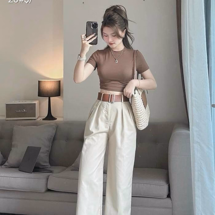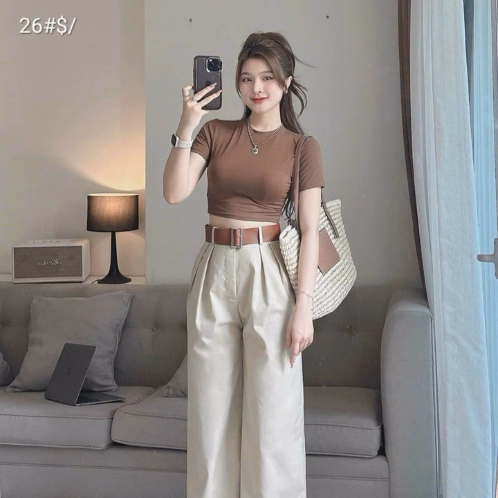 Set Áo Crotop Thun Tăm Lạnh Phối Quần Kaki(Kèm Dây Nịt) Sh95t10- Sam Freeesize < 53kg Với tone sang chảnh dành cho các nàng diện đi chơi, dự tiệc siêu xinh Kiểu dáng đơn giản,sang trọng,không kén dáng người mặc Thích hợp đi tiệc,cà phê, dạo phố.... V1 ( Vòng ngực): dưới 92cm V2 (Vòng Eo): dưới 78cm V3 : Dưới 92cm ☘ 1m50 – 1m55 từ 40 – 46kg vừa ☘ 1m55 – 1m6 từ 47 – 53kg vừa Chất liệu : Áo Thun Tăm Lạnh - Quần Kaki Xuất xứ : Việt Nam Kích thước : Freesize < 53kg Lưu ý : - Do sự chênh lệch về cài đặt ánh sáng và màn hình,màu sắc của sản phẩm thực tế có sự chênh lệch nhẹ so với thực tế. - Do đo lường thủ công khác nhau,có thể có sai số 1-3cm nhưng trong phạm vi cho phép. - Giặt riêng sản phẩm Mới bằng tay với nước lạnh và phơi khô tự nhiên (tuyệt đối không sử dụng sản phẩm với các loại bột giặt có chất tẩy cao) - Lộn mặt trái trước khi giặt để đảm bảo độ bền màu của sản phẩm. - Quý khách nhận được hàng nếu có thắc mắc vui lòng liên hệ shop trước khi đánh giá sản phẩm.Quý khách nhận được hàng,ưng sản phẩm cho shop xin 1 đánh giá 5 sao kèm hình ảnh sản phẩm nhé. - Một số sản phẩm của shop là hàng Freesize, shop đều ghi rõ số kg, màu sắc,chất liệu đều được cung cấp rõ ràng.Những trường hợp sản phẩm bị lỗi,rách hoặc sản phẩm không giống hình hay kém chất lượng, khách phải cung cấp video khi khui hàng giúp shop nhé.