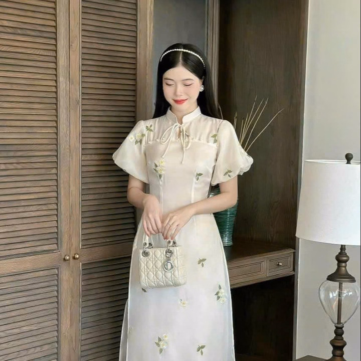 Set Áo Dài 2 Lớp Voan Ánh Kim Thêu Kèm Tà Trong Lụa Bh1258- Nana Freesize < 55kg - Tết đến thật gần rồi đấy, nàng đã sắm cho mình Áo dài diện tết chưa. - Chất liệu gấm mềm, mịn, mát,mix quần lụa trắng lưng chun co giãn. - Thiết kế phù hợp cho chị em mặc đi làm hay đi chơi tết, chụp ảnh đều toát lên vẻ dịu dàng, thanh lịch, rất tôn dáng nha chị em. - Nếu có team thì làm đủ bộ để diện lên hình bao xinh lung linh luôn ạ. Thông Tin Sản Phẩm: Chất liệu: Áo Voan Ánh Kim - Quần Phi Lụa Size: Freesize < 55kg Tùy Chiều Cao Vòng ngực: 80cm - 100cm. Vòng mông: 90cm - 120cm. Vòng eo: 60cm - 75cm. 1m50 – 1m55 từ 40 – 46kg vừa. 1m55 – 1m6 từ 46 – 52kg vừa. Trên 1m6 từ 51 – 55kg vừa. Xuất xứ: Việt Nam Lưu ý khi sử dụng: - Do sự chênh lệch về cài đặt ánh sáng và màn hình, màu sắc của sản phẩm thực tế có sự chênh lệch nhẹ so với thực tế. - Do đo lường thủ công khác nhau, có thể có sai số 1-3cm nhưng trong phạm vi cho phép. - Giặt riêng sản phẩm mới bằng tay với nước lạnh và phơi khô tự nhiên (tuyệt đối không sử dụng sản phẩm với các loại bột giặt có chất tẩy cao). - Lộn mặt trái trước khi giặt để đảm bảo độ bền màu của sản phẩm. - Quý khách nhận được hàng nếu có thắc mắc vui lòng liên hệ shop trước khi đánh giá sản phẩm.Quý khách nhận được hàng, ưng sản phẩm cho shop xin 1 đánh giá 5 sao kèm hình ảnh sản phẩm nhé. - Một số sản phẩm của shop là hàng Freesize, shop đều ghi rõ số kg, màu sắc, chất liệu đều được cung cấp rõ ràng. - Những trường hợp sản phẩm bị lỗi, rách hoặc sản phẩm không giống hình hay kém chất lượng, khách phải cung cấp video khi khui hàng giúp shop nhé.