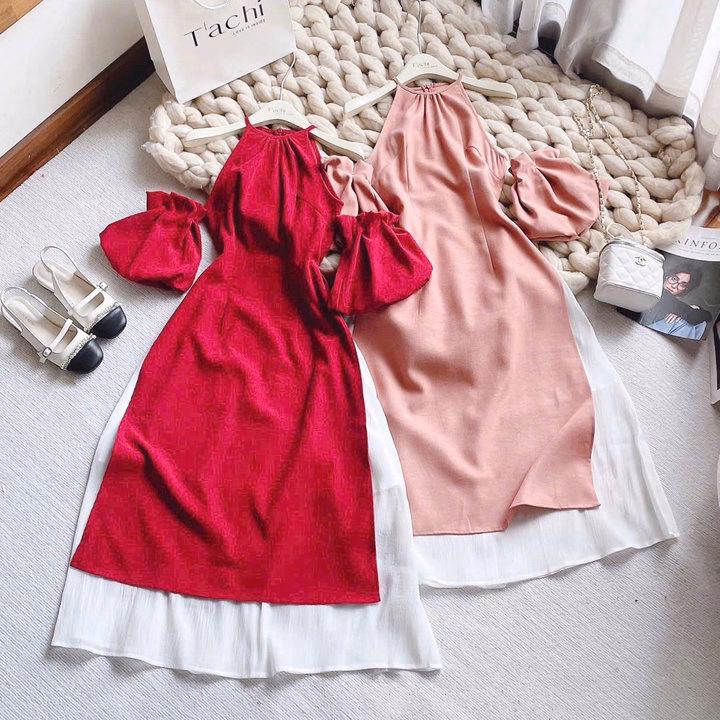 Set Áo Dài Cổ Yếm Vải Tuyết Nhung Phối Chân Váy Tơ S31- Nana Freesize < 53kg - Tết đến thật gần rồi đấy, nàng đã sắm cho mình Áo dài diện tết chưa. - Chất liệu gấm mềm, mịn, mát,mix quần lụa đen lưng chun co giãn. - Thiết kế phù hợp cho chị em mặc đi làm hay đi chơi tết, chụp ảnh đều toát lên vẻ dịu dàng, thanh lịch, rất tôn dáng nha chị em. - Nếu có team thì làm đủ bộ để diện lên hình bao xinh lung linh luôn ạ. Thông Tin Sản Phẩm: Chất liệu: Áo Dài Tuyết Nhung - Chân Váy Tơ Màu sắc: Đỏ, Hồng Size: Freesize < 53kg Tùy Chiều Cao Vòng ngực: 80cm - 100cm. Vòng mông: 90cm - 120cm. Vòng eo: 60cm - 75cm. 1m50 – 1m55 từ 40 – 46kg vừa. 1m55 – 1m6 từ 46 – 52kg vừa. Trên 1m6 từ 51 – 53kg vừa. Xuất xứ: Việt Nam Lưu ý khi sử dụng: - Do sự chênh lệch về cài đặt ánh sáng và màn hình, màu sắc của sản phẩm thực tế có sự chênh lệch nhẹ so với thực tế. - Do đo lường thủ công khác nhau, có thể có sai số 1-3cm nhưng trong phạm vi cho phép. - Giặt riêng sản phẩm mới bằng tay với nước lạnh và phơi khô tự nhiên (tuyệt đối không sử dụng sản phẩm với các loại bột giặt có chất tẩy cao). - Lộn mặt trái trước khi giặt để đảm bảo độ bền màu của sản phẩm. - Quý khách nhận được hàng nếu có thắc mắc vui lòng liên hệ shop trước khi đánh giá sản phẩm.Quý khách nhận được hàng, ưng sản phẩm cho shop xin 1 đánh giá 5 sao kèm hình ảnh sản phẩm nhé. - Một số sản phẩm của shop là hàng Freesize, shop đều ghi rõ số kg, màu sắc, chất liệu đều được cung cấp rõ ràng. - Những trường hợp sản phẩm bị lỗi, rách hoặc sản phẩm không giống hình hay kém chất lượng, khách phải cung cấp video khi khui hàng giúp shop nhé.