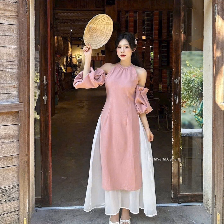 Set Áo Dài Cổ Yếm Vải Tuyết Nhung Phối Chân Váy Tơ S31- Nana House