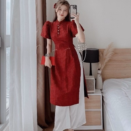 Set áo dài gấm quần lụa đẹp xuất sắc, đầm dự tiệc cúp ngực có mút ôm eo quyến rũ sang trọng.