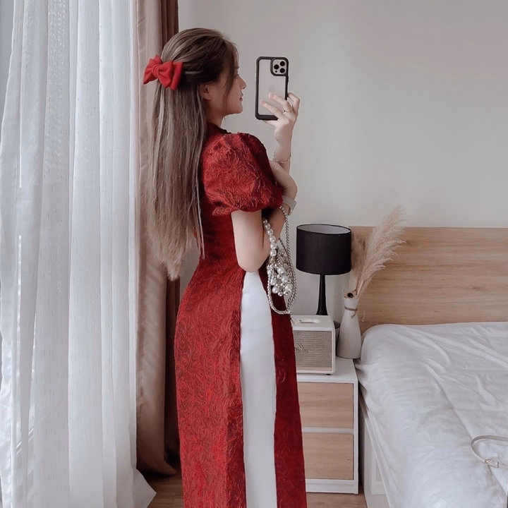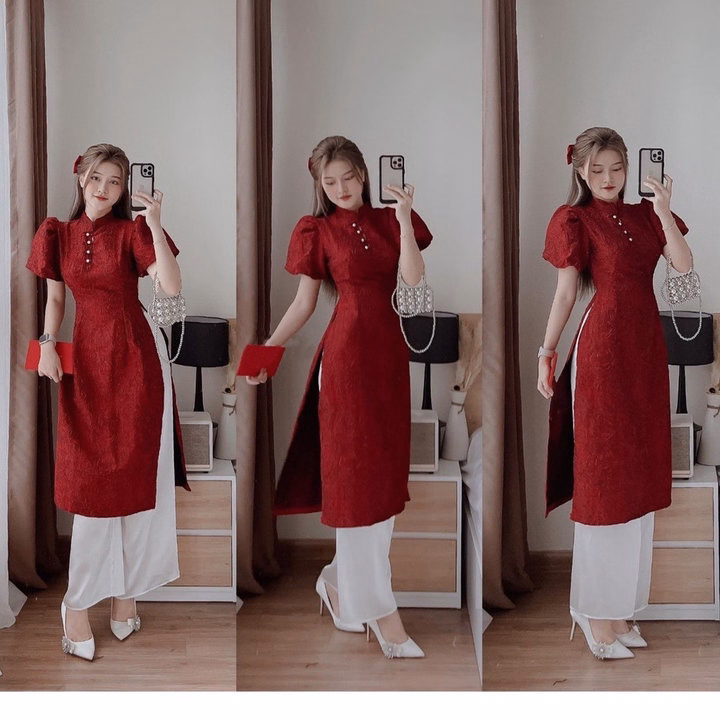 Set Áo Dài Gấm Quần Lụa Tay Phồng Đính Nút Sh1200 – Sam Freesize < 55kg - Tết đến thật gần rồi đấy, nàng đã sắm cho mình Áo dài diện tết chưa. - Chất liệu gấm mềm, mịn, mát,mix quần lụa trắng lưng chun co giãn. - Thiết kế phù hợp cho chị em mặc đi làm hay đi chơi tết, chụp ảnh đều toát lên vẻ dịu dàng, thanh lịch, rất tôn dáng nha chị em. - Nếu có team thì làm đủ bộ để diện lên hình bao xinh lung linh luôn ạ. Thông Tin Sản Phẩm: Chất liệu: Áo Gấm - Quần Lụa Màu sắc: Đỏ Size: Freesize < 55kg Tùy Chiều Cao Vòng ngực: 80cm - 100cm. Vòng mông: 90cm - 120cm. Vòng eo: 60cm - 75cm. 1m50 – 1m55 từ 40 – 46kg vừa. 1m55 – 1m6 từ 46 – 52kg vừa. Trên 1m6 từ 51 – 55kg vừa. Xuất xứ: Việt Nam Lưu ý khi sử dụng: - Do sự chênh lệch về cài đặt ánh sáng và màn hình, màu sắc của sản phẩm thực tế có sự chênh lệch nhẹ so với thực tế. - Do đo lường thủ công khác nhau, có thể có sai số 1-3cm nhưng trong phạm vi cho phép. - Giặt riêng sản phẩm mới bằng tay với nước lạnh và phơi khô tự nhiên (tuyệt đối không sử dụng sản phẩm với các loại bột giặt có chất tẩy cao). - Lộn mặt trái trước khi giặt để đảm bảo độ bền màu của sản phẩm. - Quý khách nhận được hàng nếu có thắc mắc vui lòng liên hệ shop trước khi đánh giá sản phẩm.Quý khách nhận được hàng, ưng sản phẩm cho shop xin 1 đánh giá 5 sao kèm hình ảnh sản phẩm nhé. - Một số sản phẩm của shop là hàng Freesize, shop đều ghi rõ số kg, màu sắc, chất liệu đều được cung cấp rõ ràng. - Những trường hợp sản phẩm bị lỗi, rách hoặc sản phẩm không giống hình hay kém chất lượng, khách phải cung cấp video khi khui hàng giúp shop nhé.