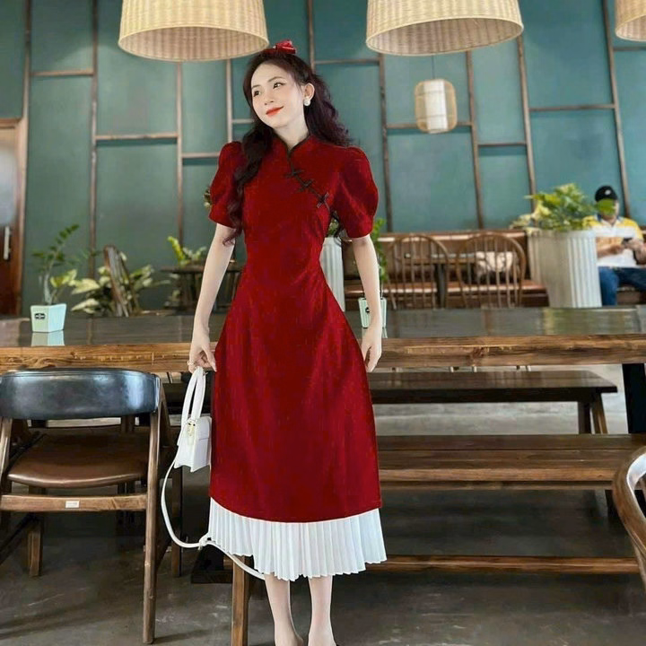 Set Áo Dài Nhung Kèm Chân Váy Dập Ly Tuyết Nhung Sh1254 – Sam Store