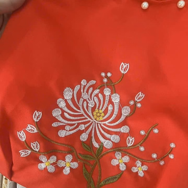 Set Áo Dài Tafta Thêu Hoa Cổ Đính Ngọc Quần Tuyết Nhung Bh1206- Nana House
