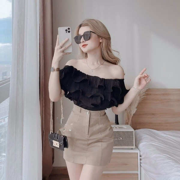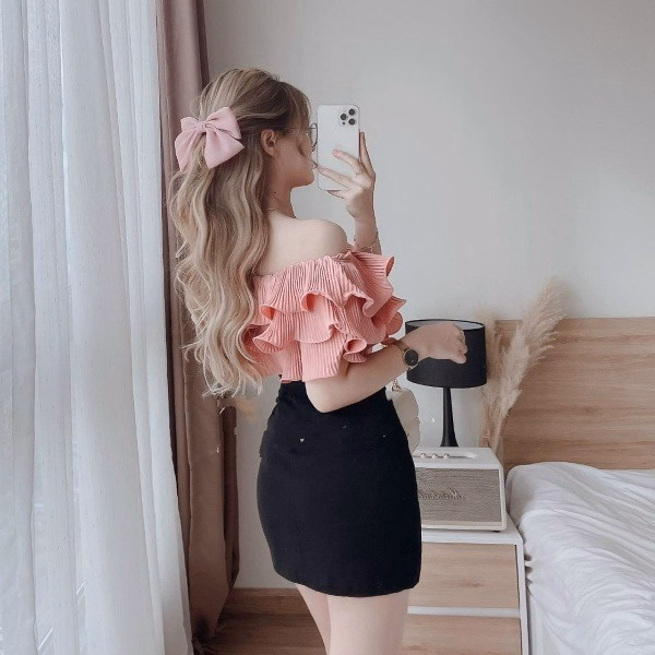 Tên sản phẩm: Set Áo Dập Ly Có Mút Ngực Kèm Chân Váy T678