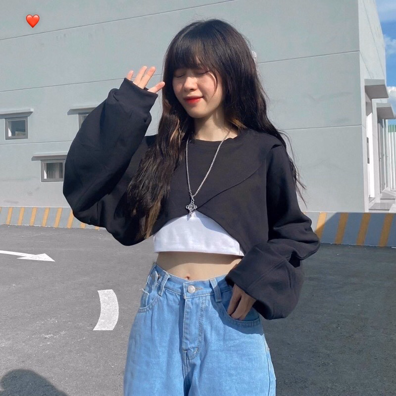 Set áo đôi gồm áo ống + áo kiểu khoác ngoài tay dài bắt mắt
