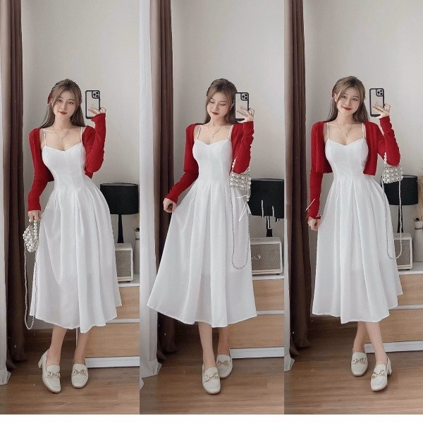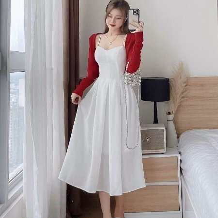 Set Áo Khoác Tăm Gân Kèm Đầm Xếp Ly Lụa Nhung ( Có Mút ) V36 – Haka Mây