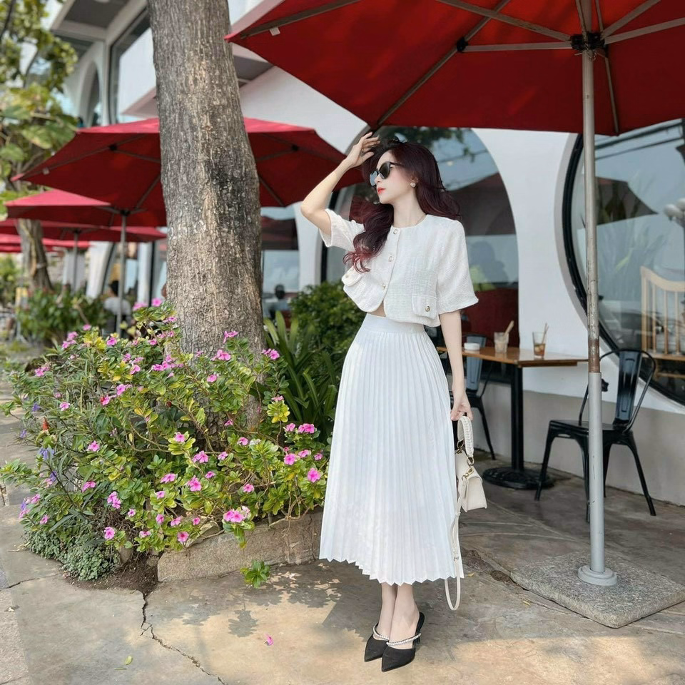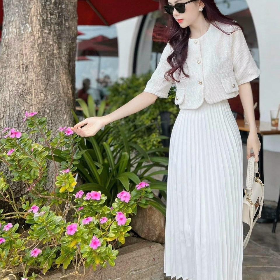 Tên sản phẩm: Set Áo Linen Cài Nút Thật Kèm Chân Váy Voan Dập Ly V967H – Aine