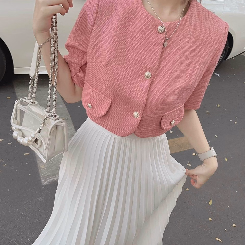 Tên sản phẩm: Set Áo Linen Cài Nút Thật Kèm Chân Váy Voan Dập Ly V968H – Aine