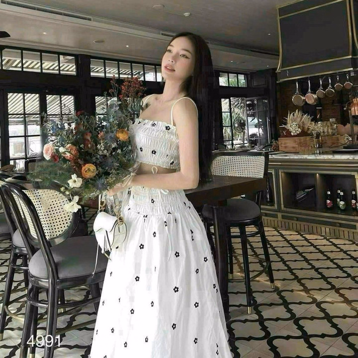 Set Áo Moking 2 Dây Mix Chân Váy Dáng Dài Nhún Lưng Bt75Lo-Sam Store
