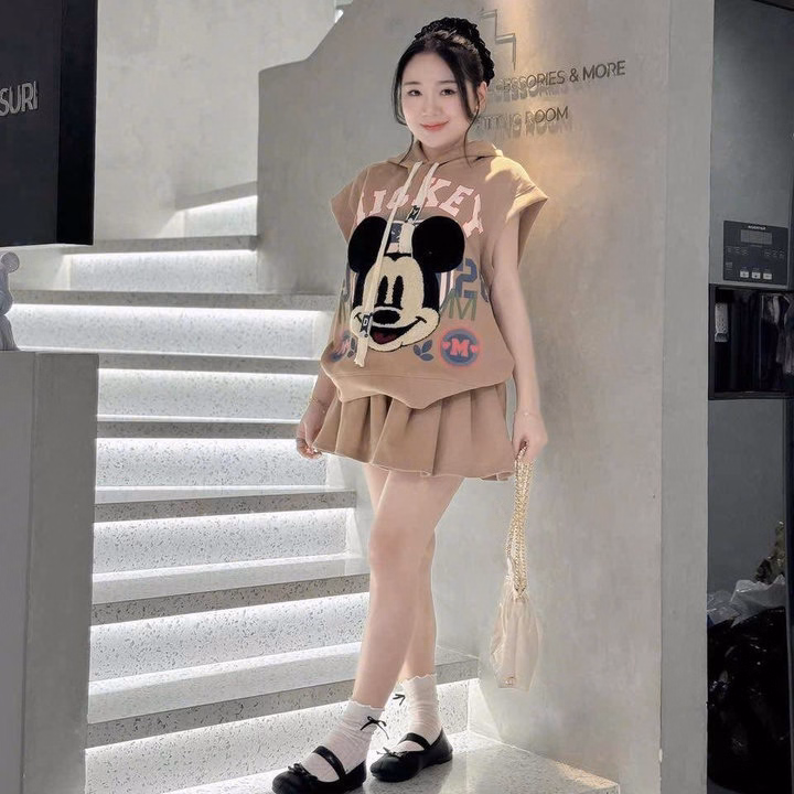 Set Áo Nỉ In Mickey Có Nón Phối Chân Váy Nỉ Xếp Ly Mtb100- Nana House