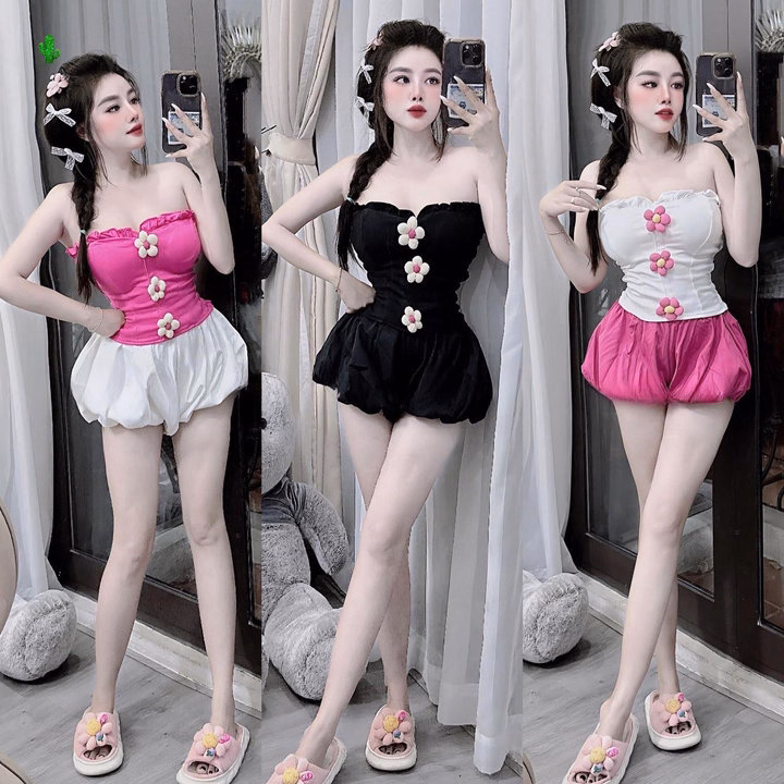 Set Áo Ống Đính Hoa Kèm Quần Bí – Lê Phương Boutique