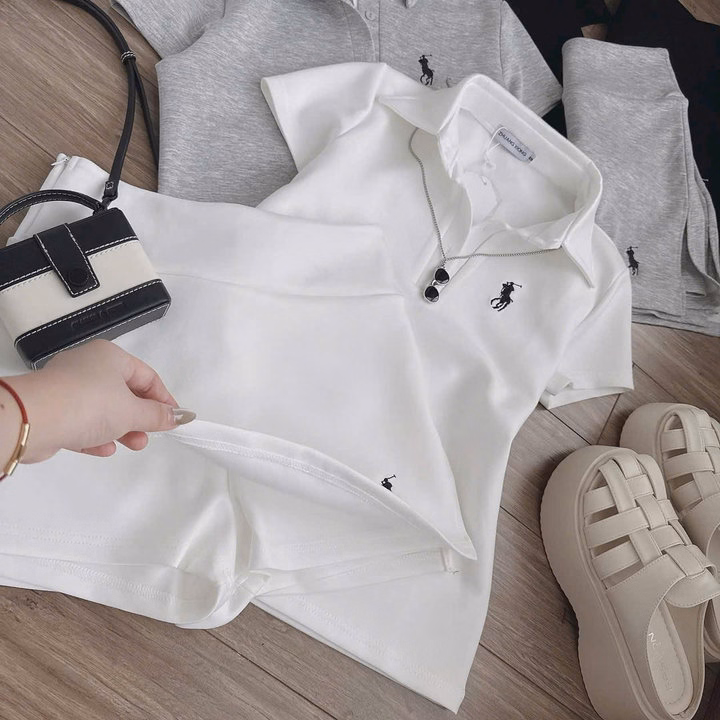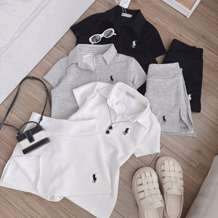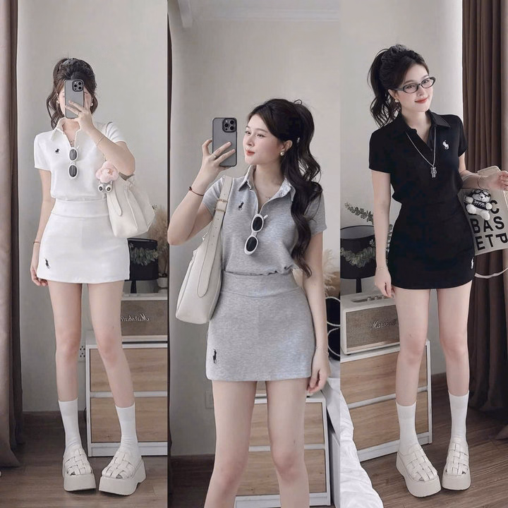 Set Áo Polo Thêu Ngựa Mix Chân Váy Ngắn Ôm Xẻ Tà Hông Chất Thời Trang Nữ Tp