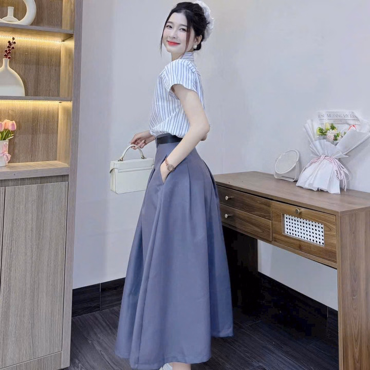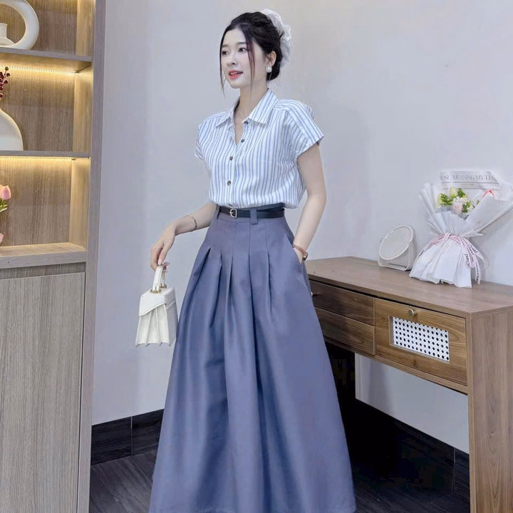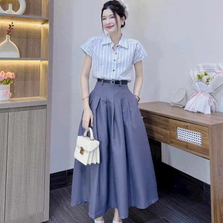 Set Áo Sơ Mi Linen Tay Con Phối Chân Váy Kaki Kèm Nịt Bh110R- Sam Store