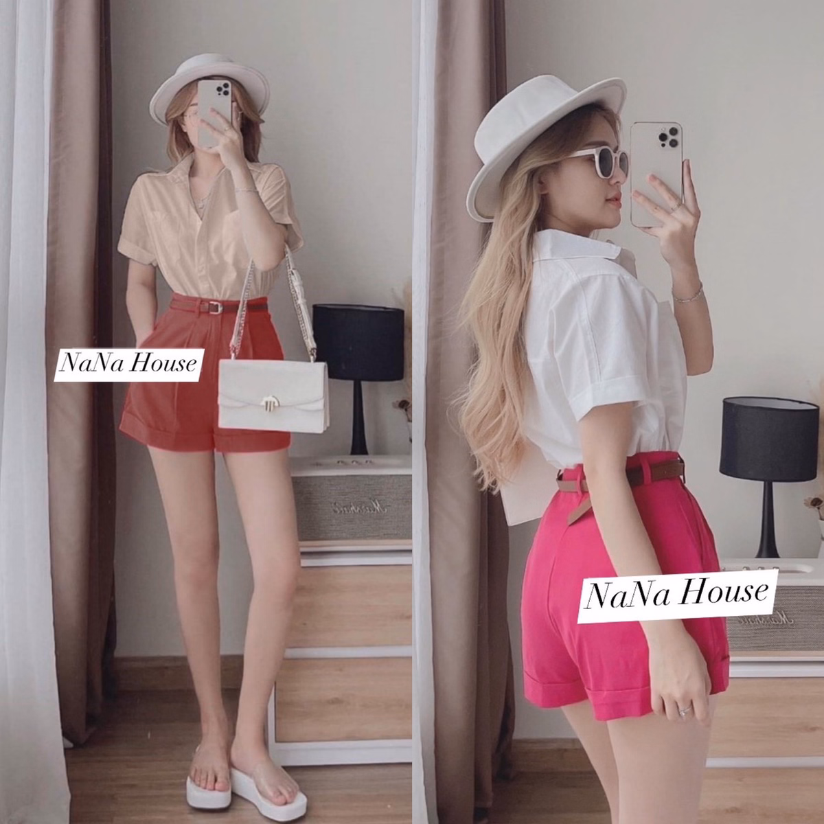Set Áo Sơ Mi Lụa, Quần Short Cotton S22 – Nana House