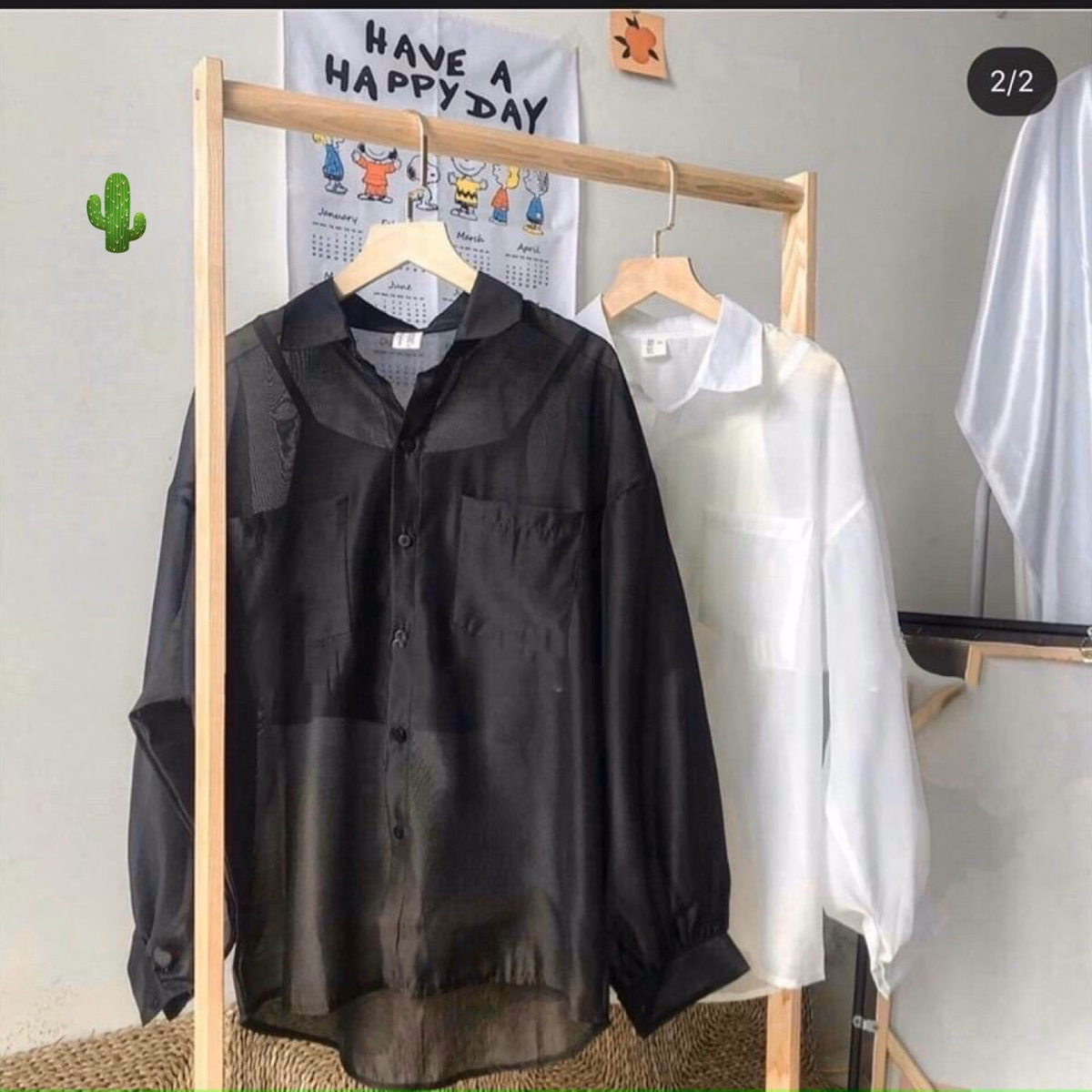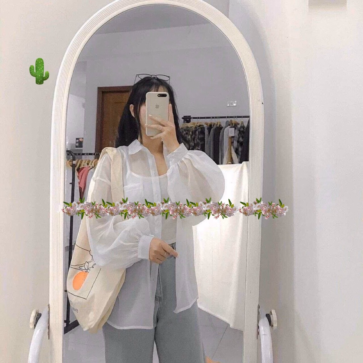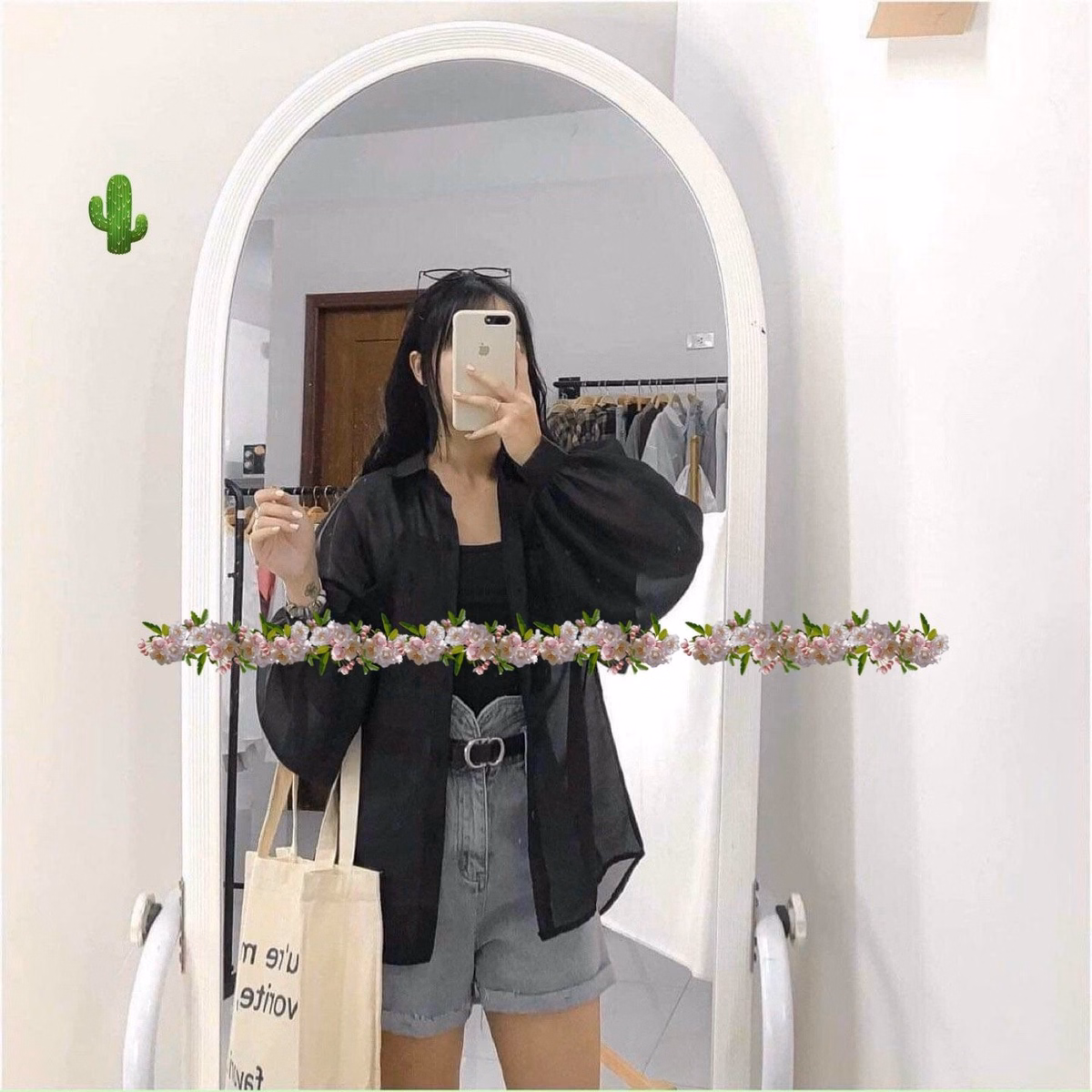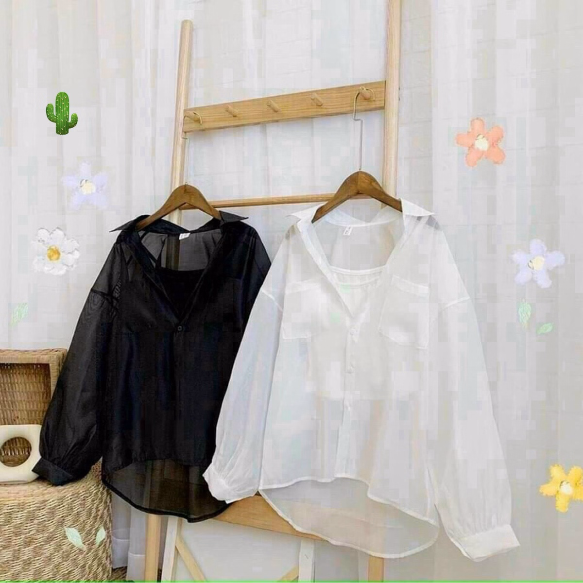 Chất liệu: áo sơ mi vải voan, áo thun borip bên trong