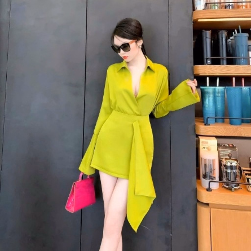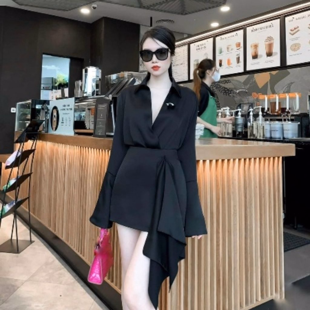 Set Áo Sơ Mi Tay Dài Kèm Chân Váy Chữ A Chất Tuyết Nhung M934 – Lisa