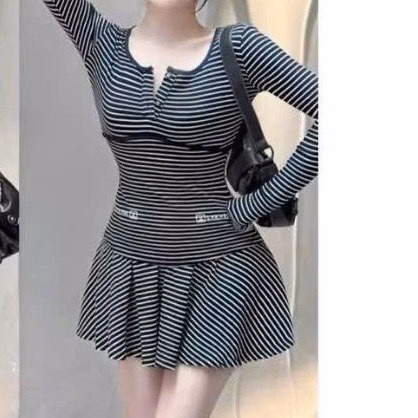 Set Áo Tay Dài Thun Tăm Phối Chân Váy Có Quần Bt100Rg
